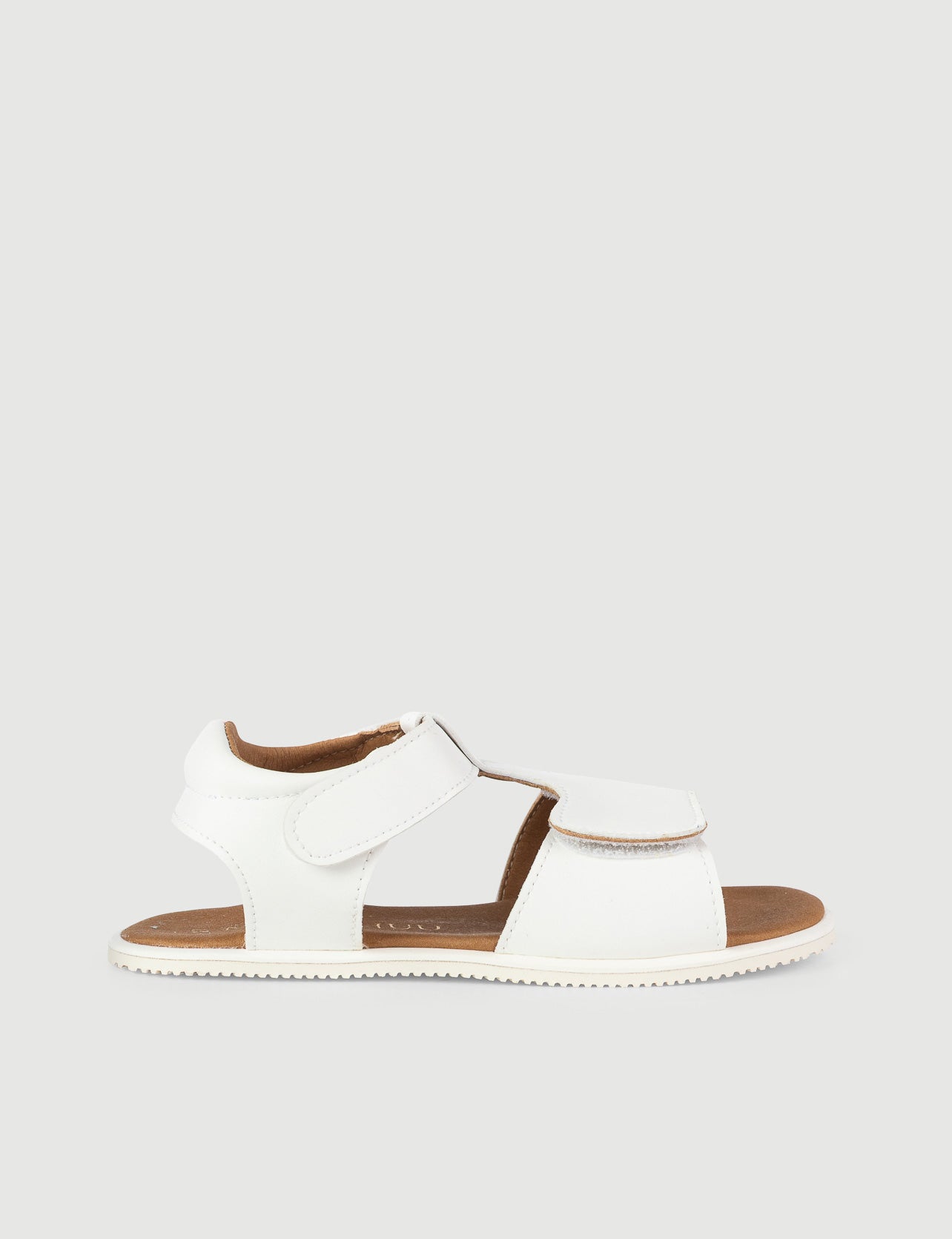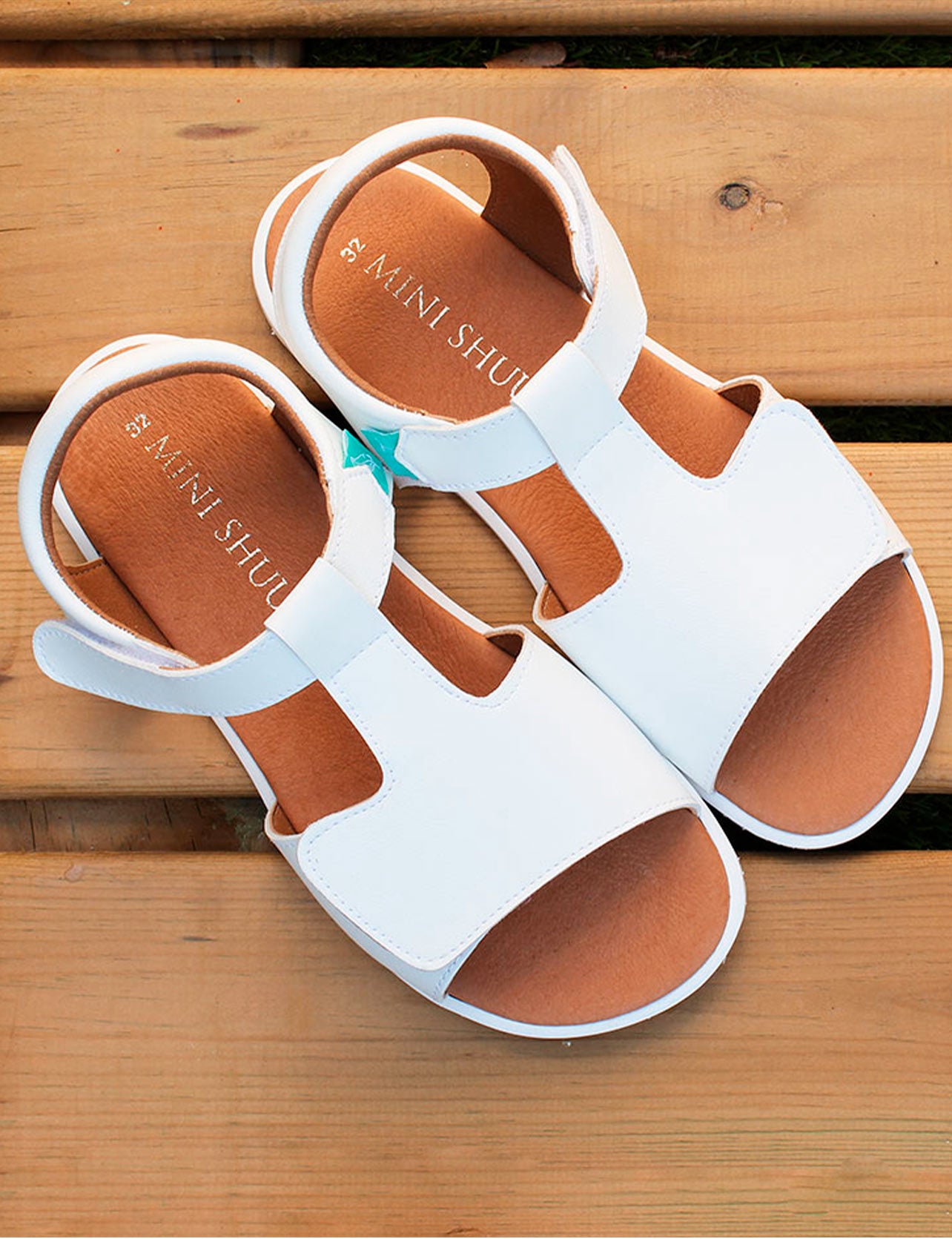 Sandalia barefoot hecha de microfibra transpirable color blanco. Ligera, fresca y respetuosa con sus pies, su patrón con velcro en tobillo y pala ajusta muy bien en pies medios y delgados, empeine medio y bajo. Zapato vegano.