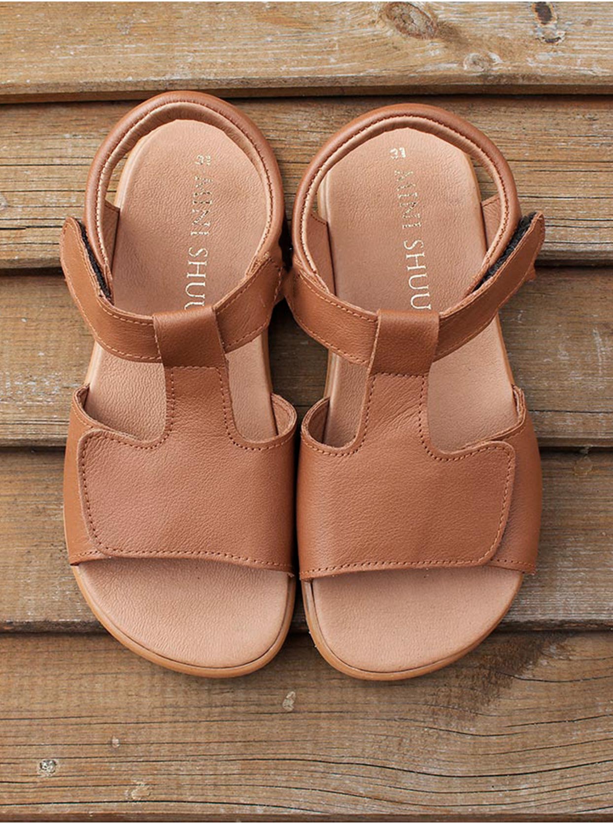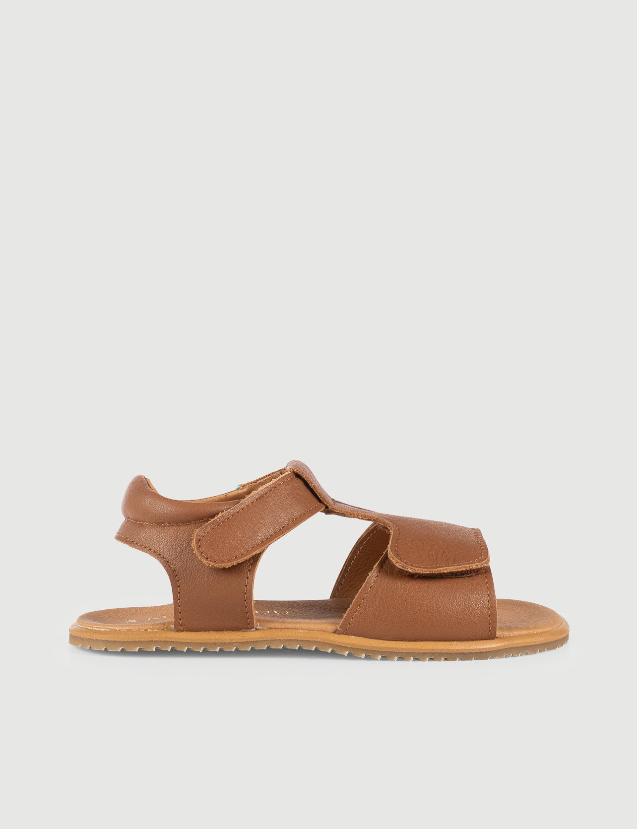 Sandalia respetuosa ligera y fresca, hecha en piel de primera calidad color cuero. Suela fina y flexible, y un patrón ajustable en tobillo y pala, en un diseño básico. Perfecta en pies medios y delgados, empeine medio y bajo.